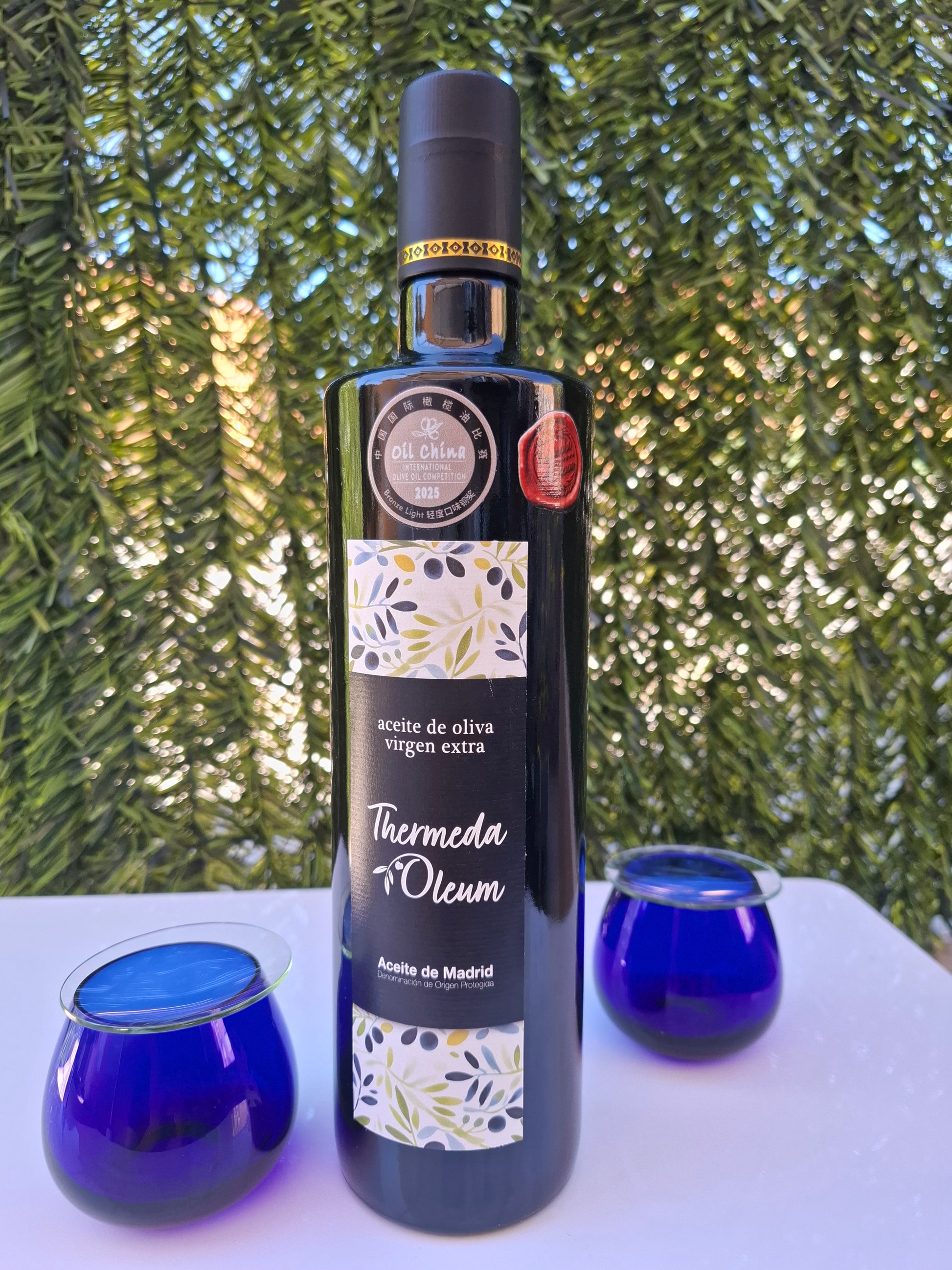 Nuestro AOVE DOP Thermeda Oleum Aceite de Madrid, elaborado principalmente con la variedad Cornicabra, es un producto muy característico por su intensidad, equilibrio y personalidad. Aquí te detallo cómo es este aceite: